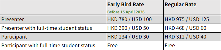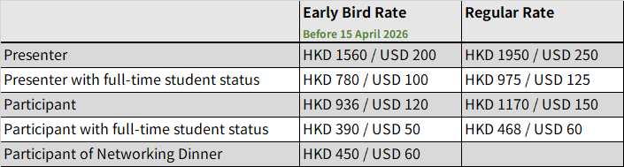 The table below lists the registration fees for different categories of participants who register for the Conference.
